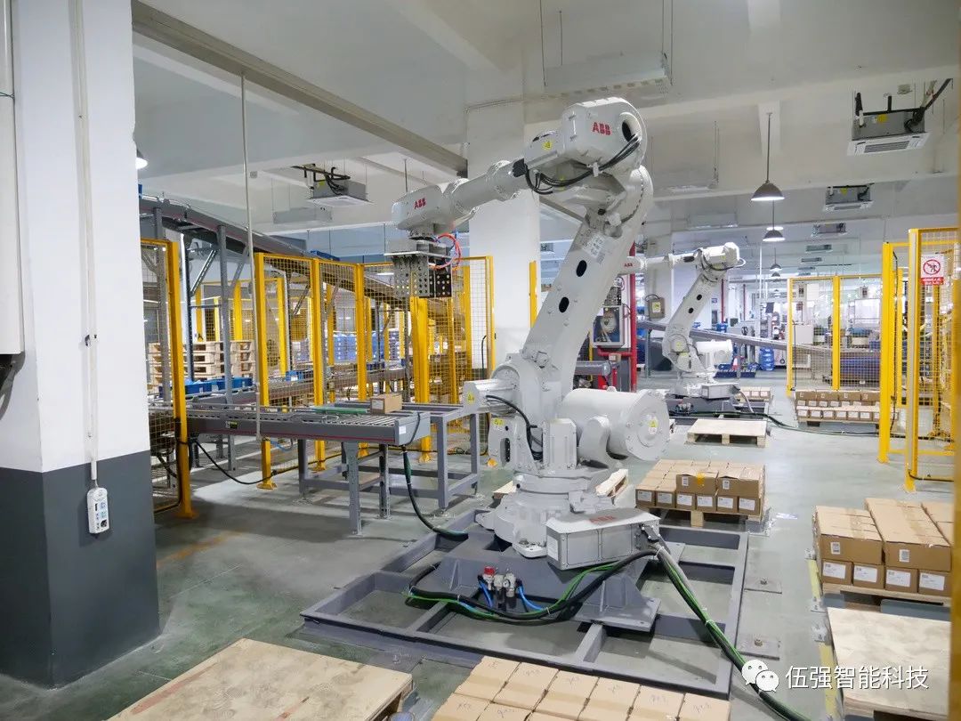 本項目在3樓設計1套機器人自動拆碼垛系統(tǒng),含3臺機械手系統(tǒng)。負責成品紙箱的組盤和碼垛作業(yè)。