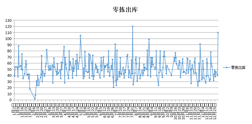 2)EQ分析:每張訂單的訂貨數(shù)量分析。對一個訂單的每行數(shù)量進行分析,就可以獲得訂單結構的基本情況。對一個訂單行來說,會存在整件和拆零兩種情況,因此,訂單的分布情況還可以指導對庫存分布、拆零揀選的具體設計。