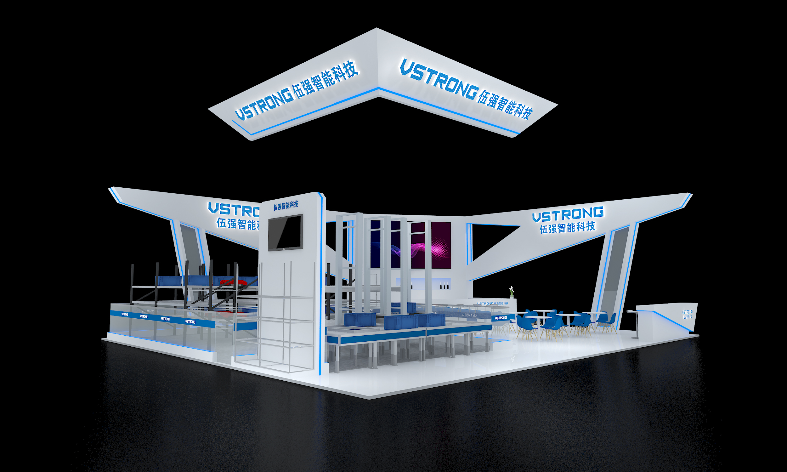伍強智能科技本次展出的“貨到人”揀選系統(tǒng)主要由密集存儲貨架、四向揀選車、高速提升機、智能揀選工作站、輸送系統(tǒng)及信息系統(tǒng)等構成。
