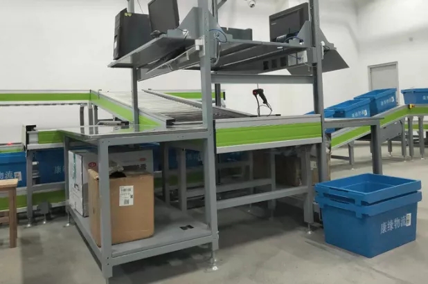 用于拆零后的復(fù)核與包裝。共設(shè)計18組包裝臺(預(yù)留4組)。采用伍強科技為醫(yī)藥物流中專門設(shè)計的一體化包裝復(fù)核工作站。